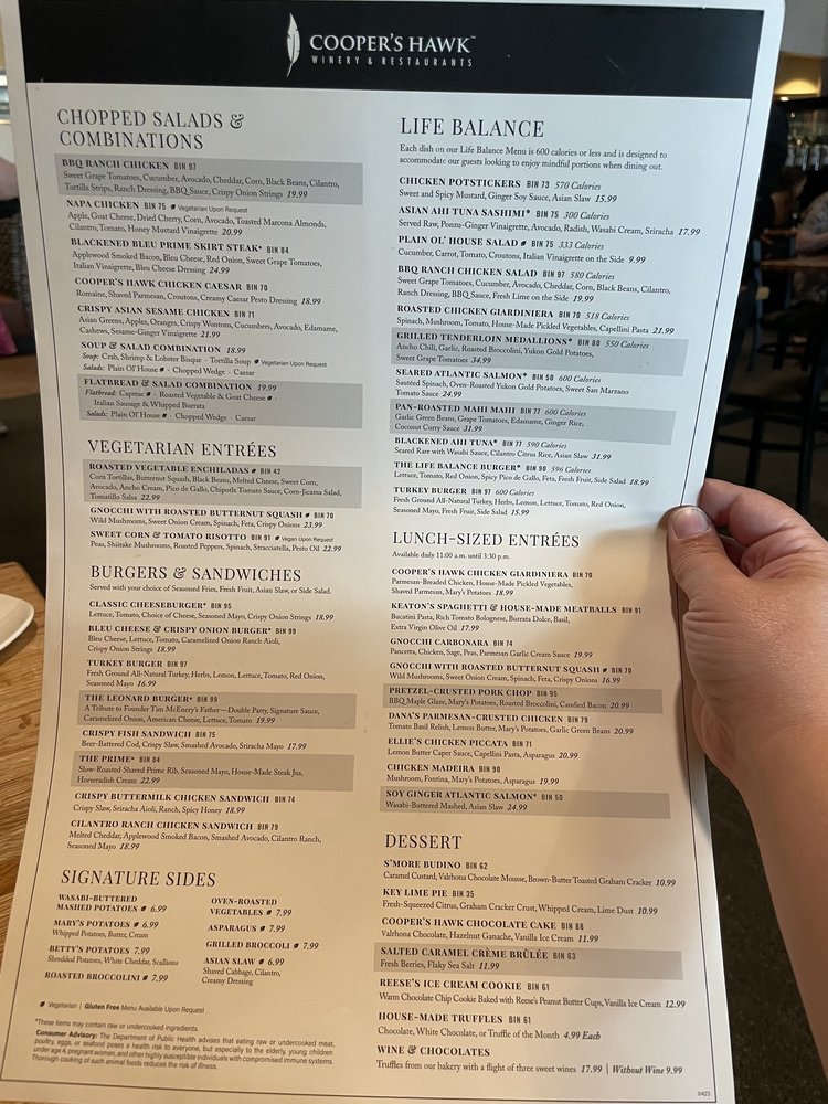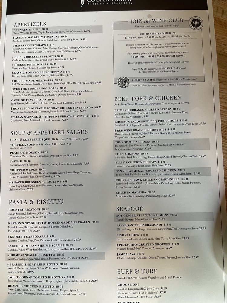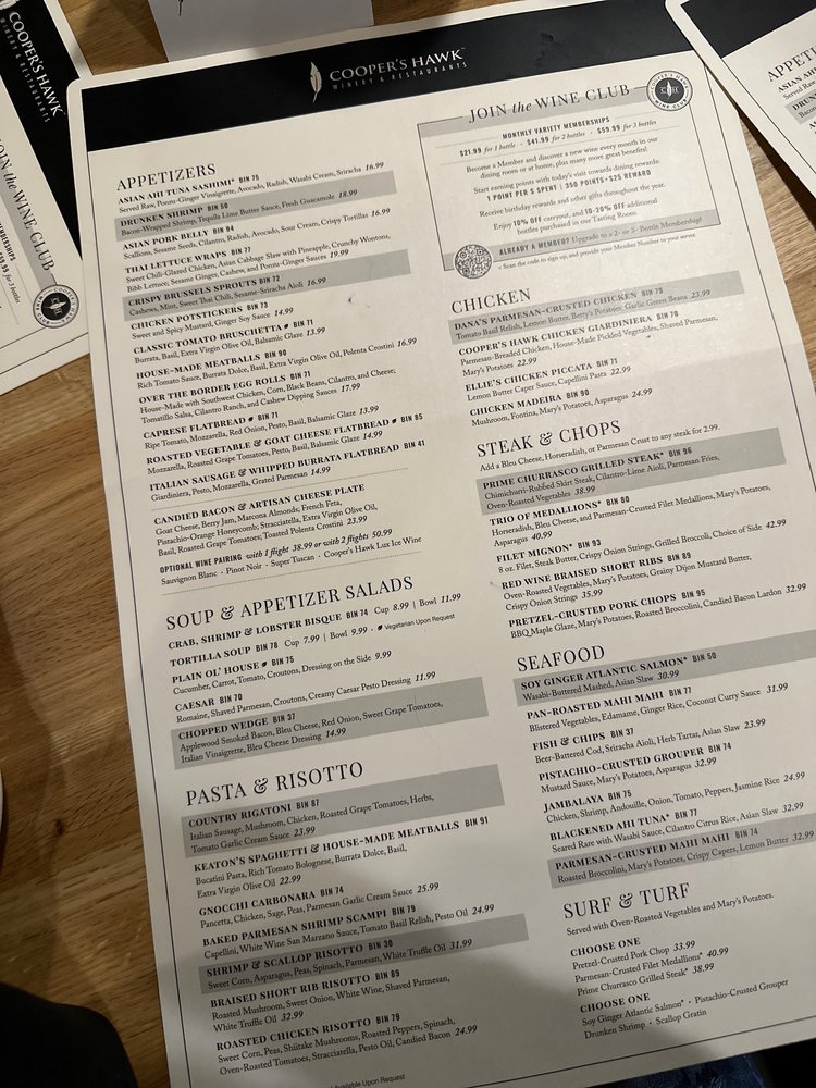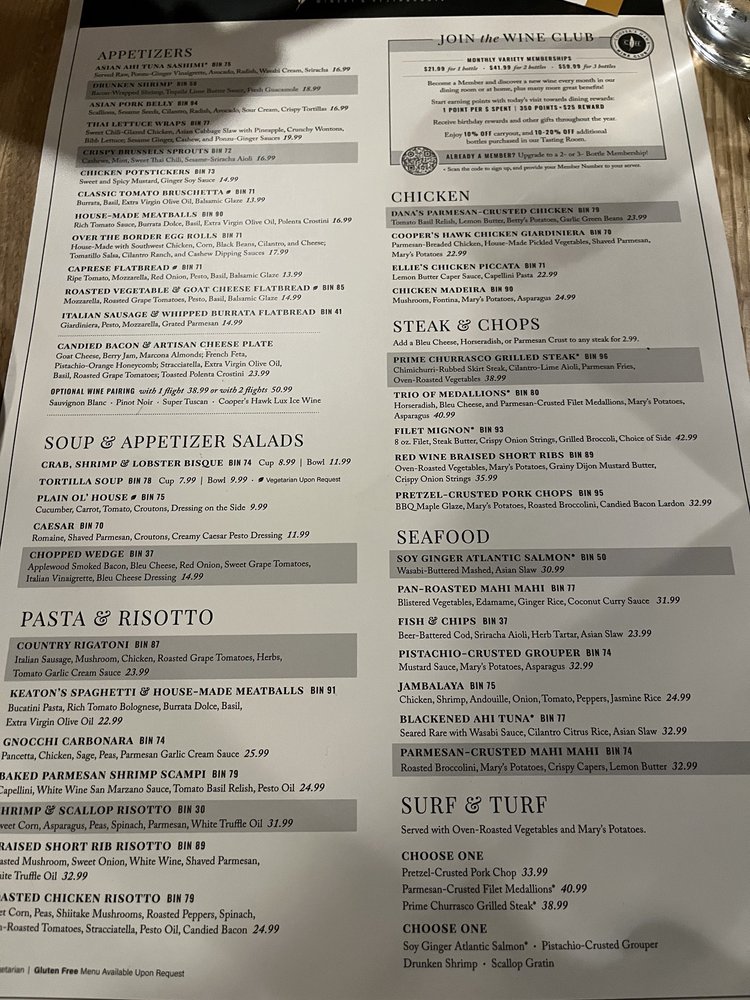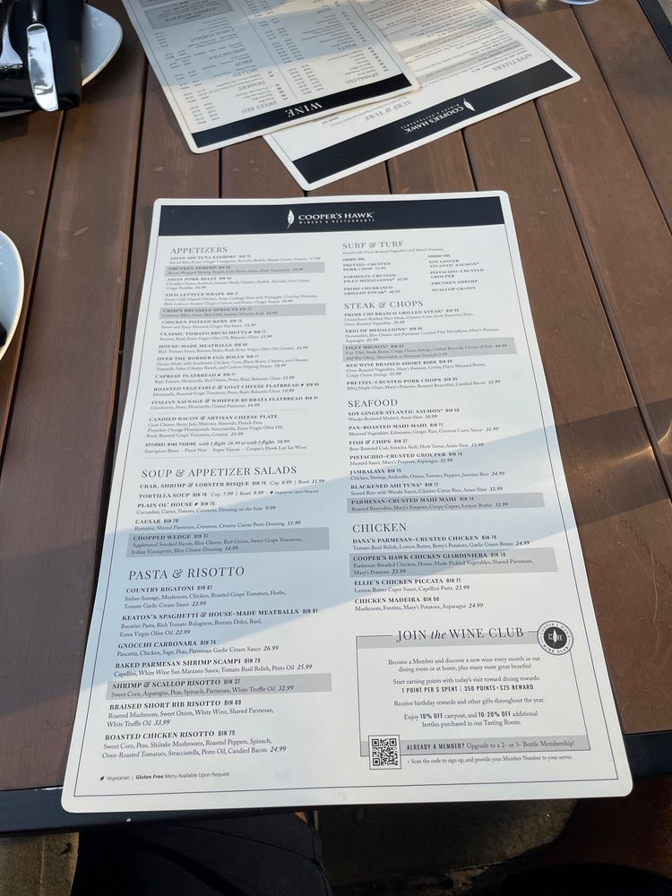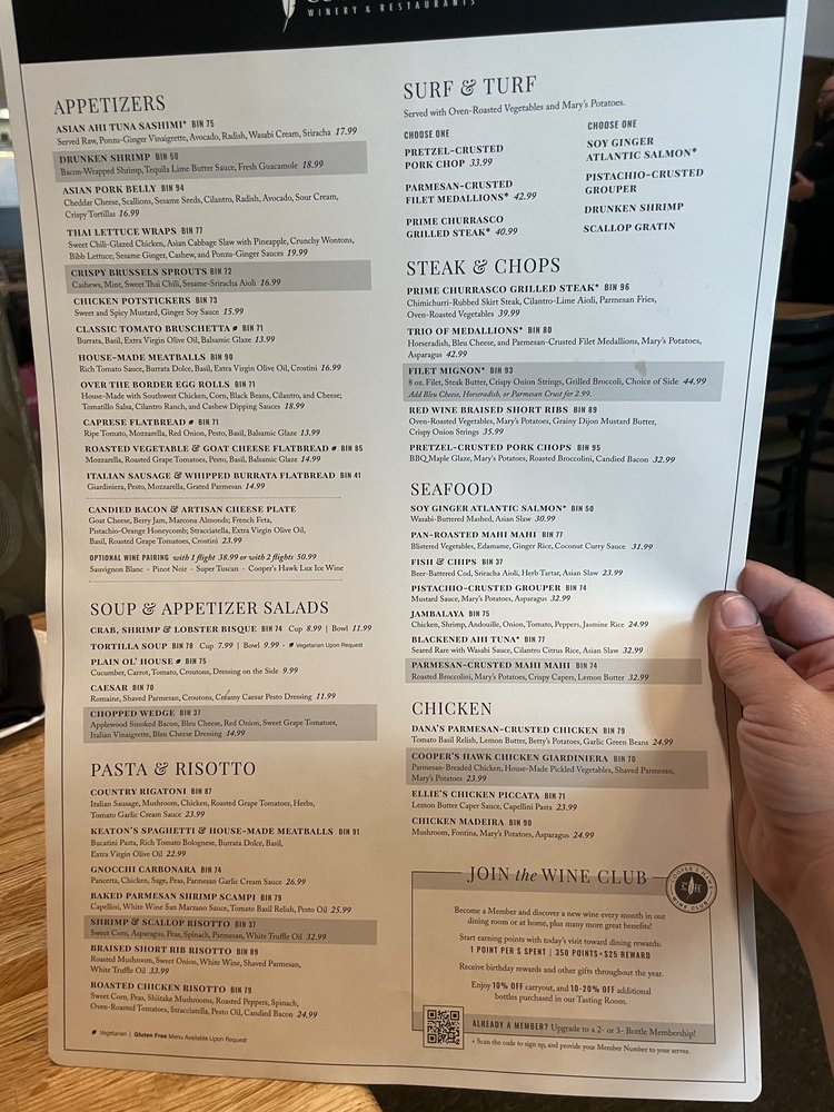 Cooper’s Hawk Winery & Restaurant- Columbus offers a diverse menu with options for everyone, from Asian Ahi tuna Sashimi to Crab, Shrimp & Lobster Bisque and Gnocchi Carbonara. The ambiance is described as romantic and classy, making it a great spot for a date night or special occasion. Customer reviews praise the welcoming atmosphere, attentive service, and delicious food, with standouts like the meatballs, short rib, and chicken Madeira. The outdoor patio provides a lovely setting to enjoy your meal, and the extensive wine list adds to the overall dining experience. With options for vegan and vegetarian diners, as well as Happy Hour specials and free Wi-Fi, Cooper’s Hawk Winery & Restaurant- Columbus is a versatile and enjoyable dining destination in Columbus, Ohio.